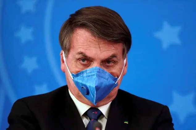 (Foto Reuters: il presidente brasiliano Jair Bolsonaro con la mascherina protettiva).