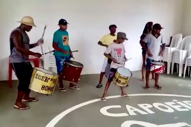 Il piccolo indio ci racconta che aveva iniziato il suo progetto di musica sociale raccogliendo vecchi strumenti rotti, dei quali le persone si volevano disfare, oppure trasformando in strumenti alcuni oggetti di scarto, ma mancavano le risorse, un luogo dove poter imparare insieme agli altri piccoli come lui, a suonare e creare ritmi musicali, magari all’aperto, ma in sicurezza e senza disturbare gli adulti. Aveva chiesto allora aiuto ad alcune persone vicine a lui per poter restaurare il materiale raccolto e, tra queste, l’artista Jorge Alberto Freitas dos Santos.