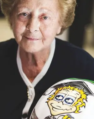 Riproponiamo una nostra intervista, pubblicata su Famiglia Cristiana n.30 del 2013. Valentinik, come Paperinik supereroe Disney, o Rossifumi, da Norick Abe detto Norifumi, idolo della 500. Ma anche The Doctor, il dottore, per dare risalto alle qualità sopraffine nel mettere a punto la moto e per l’abilità di guida. E ancora, lo squalo bianco, Roobin Hood o l’ultimo dei Mohicani. Sono questi solo alcuni dei tanti soprannomi di Valentino Rossi, che per nonna Denise resta sempre e semplicemente «il mio Vale». «L’ultima volta che abbiamo passato un po’ di tempo insieme è stato a Natale, solitamente sennò, causa le gare, passa, suona e non faccio in tempo ad affacciarmi al balcone che è già volato via».