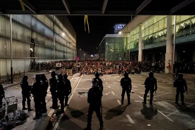 (Foto Reuters: i manifestanti indipendentisti affrontano i poliziotti all'aeroporto di Barcellona)