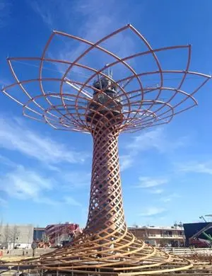 L’Albero della Vita, 35 metri di larice siberiano e metallo, con una chioma di 45 metri di diametro. Ideato da Marco Balich, sarà animato nei sei mesi dell’evento da più di 1.200 spettacoli tra giochi di luce, colore e acqua. È costato 8,5 milioni di euro.