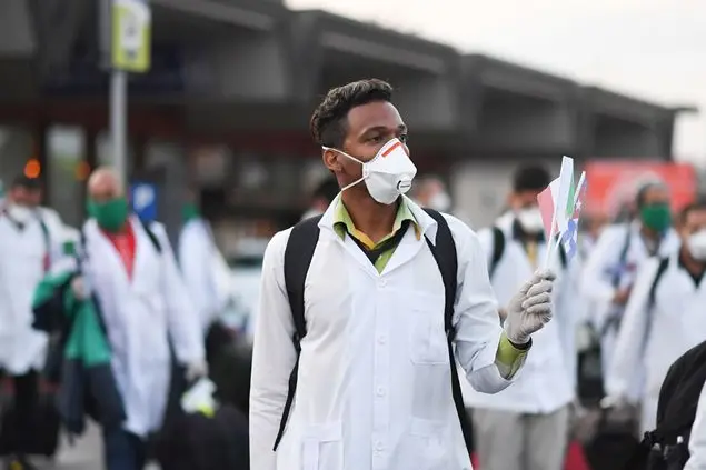 Fídel Castro li aveva chiamati el ejercito de las batas blancas, l’esercito dei camici bianchi. Sono i medici e gli infermieri cubani impegnati in missioni internazionali. Cinquantadue di loro sono arrivati ieri all’aeroporto di Malpensa per dare supporto all’ospedale da campo di Crema. Specializzata nel trattamento delle malattie infettive, la brigata cubana è preparata ad affrontare e gestire situazioni di emergenza sanitaria, come oggi è la pandemia del coronavirus. Nel team - composto tutto da uomini - ci sono trenta medici che hanno già operato nel 2014 in Africa occidentale, per combattere contro l’epidemia di ebola. Allora, più di 460 professionisti medico-sanitari cubani sono stati inviati in Guinea, Sierra Leone e Liberia, una parte dei quali ha operato direttamente per l’Organizzazione mondiale della sanità.