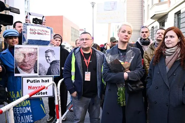 (Foto Reuters: Yulia Navalnaya davanti all'ambasciata russa a Berlino)
