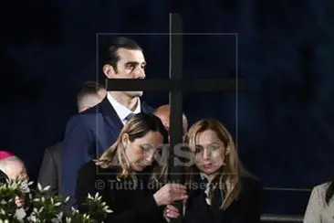 Nella foto: due donne, una russa e l'altra ucraina, alla Via Crucis al Co0losseo, il 15 aprile 2022.
