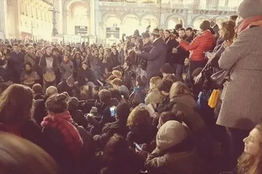 Per capire la portata dell’affetto e dell’ammirazione che i ragazzi provano per Fabrizio De André basta fare un giro l’11 gennaio di ogni anno dalla sua morte, e assistere alla cosiddetta Cantata anarchica (nell'immagine un raduno a Milano)ì di qualche anno fa)… Nulla di facinoroso. Solo tanti, ma proprio tanti, ragazzi che si trovano nelle piazze principali della loro città e armati di chitarre, percussioni, flauti e la forza delle loro voci, riuniti a piccoli gruppi, intonano le canzoni del grande artista, scomparso ormai 25 anni fa.