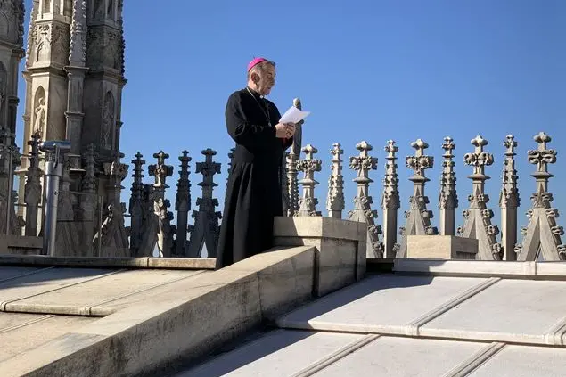 (in copertina, l'arcivescovo di Milano Mario Delpini prega la Madonnina per i milanesi e tutta la diocesi ambrosiana l'11 Marzo 2020)