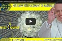 AttualitàDiretta video: papa Francesco sposa 20 coppie in VaticanoBergoglio presiede la Santa Messa con celebrazione del sacramento del Matrimonio.14 settembre 2014 • 00:00Tag:famigliamatrimoniopapa FrancescosposivaticanoPHOTO Tweets di @fam_cristiana