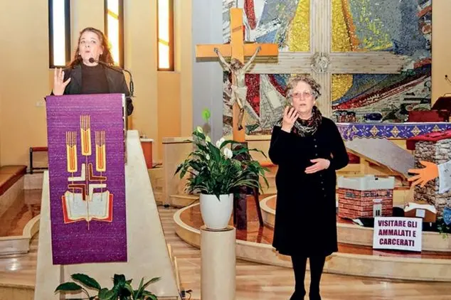 Prezioso è l’aiuto delle interpreti, che operano gratuitamente e instancabilmente per offrire una celebrazione eucaristica tradotta simultaneamente; anche al primo banco, seguire il labiale del sacerdote e dei lettori non è cosa facile.