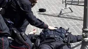 Le prime immagini dopo la sparatoria davanti a Palazzo Chigi, sede del Governo, tratte da un servizio di SkyTG24: