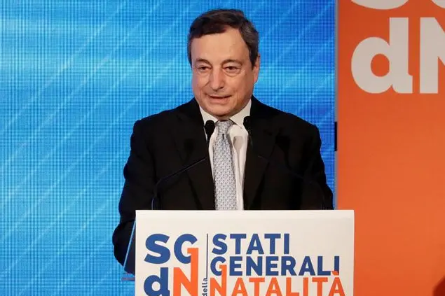 «La spesa sociale per le famiglie è molto più bassa che in altri Paesi come la Francia e il Regno Unito. Già prima della crisi sanitaria, l'Italia soffriva di un preoccupante e perdurante declino di natalità. Nell'anno della pandemia si è ulteriormente accentuato. Nel 2020 sono nati solo 404.000 bambini. È il numero più basso dall'Unità d'Italia e quasi il 30 per cento in meno rispetto a dieci anni fa». Così è intervenuto Mario Draghi agli Stati generali della natalità, l'evento fortemente voluto dal Forum nazionale della Associazioni famigliari alla cui apertura hanno partecipato Papa Francesco e il Premier. Entrambi hanno sottolineato la preoccupazione per l'inverno demografico che sta attraversano l'Italia: «Sempre nel 2020, la differenza tra nascite e morti ha toccato un record negativo: 340.000 persone in meno. Oggi metà degli italiani ha almeno 47 anni - l'età mediana più alta d'Europa».