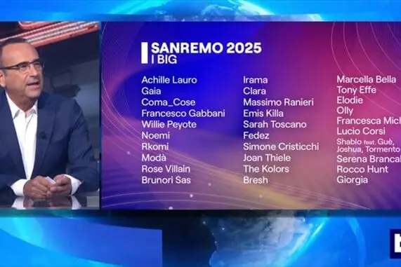 E poi ancora: Fedez, Simone Cristicchi, Joan Thiele, The Kolors, Bresh, Marcella Bella, Tony Effe, Elodie, Olly, Francesca Michielin, Lucio Corsi, Shablo feat. Guè, Joshua, Tormento, Serena Brancale, Rocco Hunt e Giorgia: sono i 30 nomi dei Big in gara a Sanremo 2025 (11-15 febbraio), annunciati dal direttore artistico Carlo Conti in diretta al Tg1 delle 13.30.