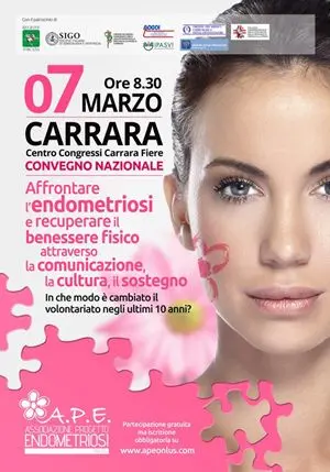 Da 10 anni l’A.P.E. (Associazione Progetto Endometriosi) - un gruppo di donne affette da endometriosi che si basa sul reciproco sostegno, conforto e aiuto - è impegnata in un’importante campagna di sensibilizzazione. Il prossimo 7 marzo, nell'ambito della settimana europea della consapevolezza dell'endometriosi, si terrà a Carrara, presso il Centro Congressi Carrara Fiere, un Convegno Nazionale dal titolo “Affrontare l’endometriosi e recuperare il benessere fisico attraverso la comunicazione, la cultura, il sostegno ” - In che modo è cambiato il volontariato negli ultimi 10 anni (con l’avvento dei social network)? Motto del Convegno è: A.P.E Onlus ricomincia da 10! Quando A.P.E. Onlus è nata, nel 2005, il desiderio più grande delle socie fondatrici era quello di arrivare alle donne, comunicare con loro, non farle sentire sole e creare qualcosa che le rappresentasse e desse voce al loro silenzio.