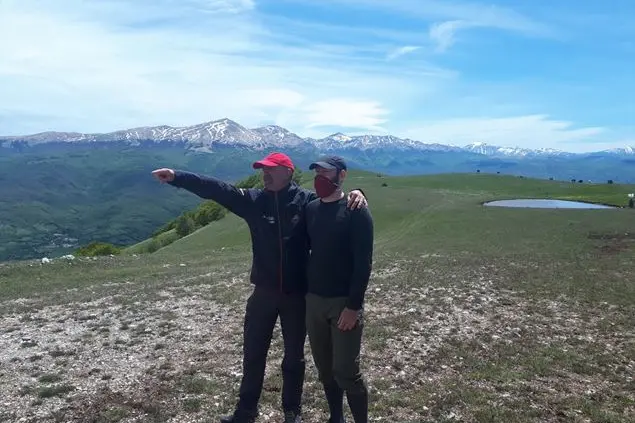 (Nella foto: Paolo Piacentini, a sinistra, con un amico inglese camminatore ed esperto dell'Appennino centrale, sui Monti Sibillini, nelle Marche)