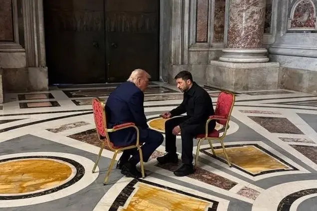 Avevano litigato davanti alle telecamere, nello Studio Ovale della Casa Bianca, il 28 febbraio scorso. Poi Donald Trump e Volodymyr Zelensky non si erano più rivisti. Le esequie di papa Francesco sono state l’occasione per un nuovo incontro fra il presidente americano e quello ucraino. Un incontro che si è volto all’interno della Basilica di San Pietro, pochi minuti prima dell’inizio della cerimonia. Un rito funebre in cui, nell’omelia, il cardinale Re ha ricordato che Francesco esortava a “costruire ponti e non muri”. Un incontro breve, tenuto riservato fino alla fine del rito, e in apparenza pacato. Un funzionario ucraino - il capo ufficio di Zelensky, Andriy Yermak - ha poi diffuso immagini dei due leader seduti uno di fronte all’altro, seduti su due sedie all'interno della basilica. In altre immagini si vedono accanto a Trump e Zelensky il presidente francese Macron e il primo ministro britannico Starmer. In seguito il presidente ucraino ha avuto incontri separati sia con Macron che con Starmer. Dalle foto diffuse dal ministro degli esteri ucraino Andrii Sybiha, sembrerebbe che gli incontri si siano svolti nei giardini del Vaticano.