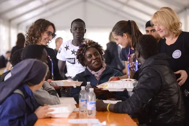4 ottobre, giornata di San Francesco e avvio del Sinodo sulla famiglia. Con questo spirito la Caritas ambrosiana porta a Expo la Mensa dei Popoli e la riflessione di un anno su come le famiglie possono “Con-dividere per moltiplicare”. Versando 10 euro, visitatori e simpatizzanti hanno pranzato dando la possibilità a 1.800 persone che vivono in situazione di disagio, abitanti a Milano e Lombardia, di visitare l’Esposizione universale e di mangiare nel piazzale antistante Cascina Triulza, il cuore sociale di Expo. Un totale di tremila coperti, cibo «ecologico e sostenibile», tavolate apparecchiate con materiale riciclabile per non inquinare e sprecare.