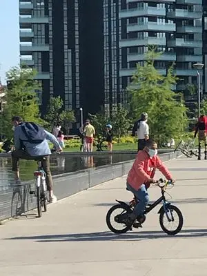 Liberi tutti sembra essere anche l'idea di chi già da diversi giorni fa la circumnavigazione di corsa del quartiere, con tanto di calzoncini e scarpe da runner e la mascherina sul mento, perché correre per chilometri e respirare dietro quella fastidiosa protezione personale non si riesce proprio...