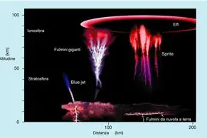I red sprites – alla lettera, “folletti rossi” – e i blue jets sono fenomeni ottici che avvengono tra la stratosfera e la mesosfera in presenza di nubi temporalesche di notevole sviluppo verticale e fanno parte dei cosiddetti fenomeni TLE (Transient Luminous Events) ovvero eventi luminosi atmosferici con durata di appena qualche frazione di secondo.