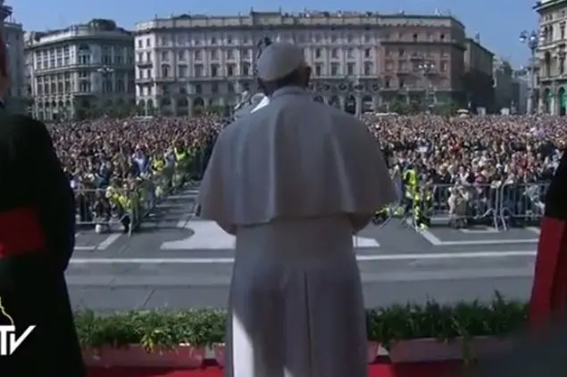 Quando si affaccia sul sagrato Francesco ritrova la folla festante che lo attendeva stipata nella piazza. Scherza sulle condizioni meteorologiche (“avevano previsto la pioggia e invece guardate che bel sole”), recita l’angelus e e apre le braccia come in un largo abbraccio a quella folla venuta da tutta la Lombardia per vedere Francesco. Ma è già tempo di risalire sulla papa-mobile per dirigersi verso il penitenziario di San Vittore, in questa visita breve e intensa come una scossa. Una scossa per far ripartire la chiesa ambrosiana.