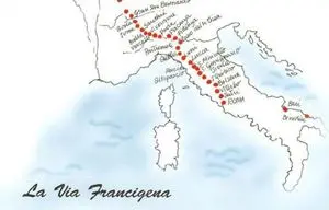 Risalgono al IX secolo i primi documenti d'archivio che citano l'esistenza della Francigena, antica via che nel medioevo univa la britannica città di Canterbury a Romae ai porti della Puglia, riscoperta dai moderni viandanti che si mettono in cammino per milleottocento chilometri, sino a raggiungere Gerusalemme.