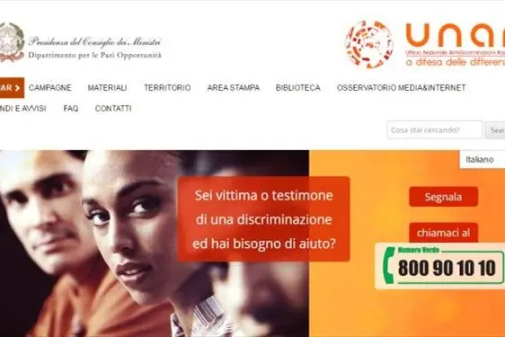 (Nella foto sopra: un'immagina tratta dalla Home Page del sito Internet dell'Unar)