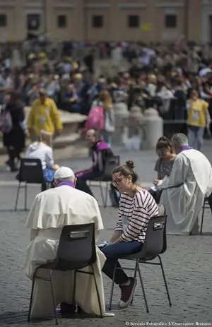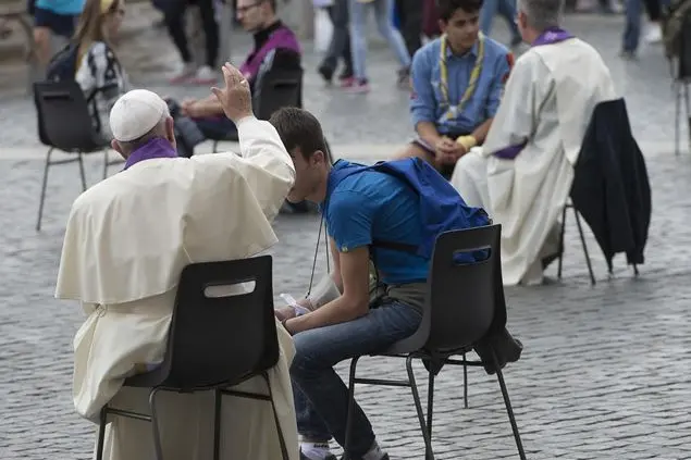 A sorpresa c'era anche lui, il Papa. Tra le 11,30 e le 12,45, Francesco ha confessato 16 giovani in una Piazza San Pietro diventata luogo di riconciliazione e di perdono. Il Giubileo dei ragazzi s'è arricchito di un fuori programma che ha emozionato a commosso. Jorge Mario Beroglio ha cominciato la giornata in cui si festeggia il suo onomastico (lo spagnolo Jorge si traduce infatti con Giorgio) scrivendo un Tweet («Cari ragazzi e ragazze i vostri nomi sono scritti nel cielo, nel cuore misericordioso del Padre. Siate coraggiosi, controcorrente!») e poi unendosi ad altri sacerdoti, almeno 150 in tutto, che hanno trasformnato il cuore cristiano di Roma e del mondo in un confessionale a cielo aperto.