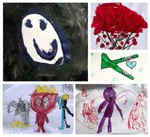 Nei fogli colorati da questi bambini, tutti accolti nella casa famiglia “Il Tetto Casal fattoria”, si vede un viso sorridente circondato dal colore nero (Sorridi nel buio), un coccodrillo che mangia un cuore, un albero rosso sangue, figure ‘spaventose’ e persone che urlano.