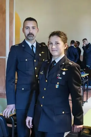 Elena Crivellari, 20 anni, è al secondo anno di Scienze Politiche. E' qua col fratello Andrea di 20 anni. «Siamo entrati insieme e questo mi ha aiutato molto. Con lui il rapporto si è stabilizzato e rafforzato giorno per giorno. Sono orgogliosa di appartenere all'Aeronautica, l'èlite delle Forze Armate. Tenterò il concorso per la scuola di Marescialli. Undicimila candidati per 800 posti».