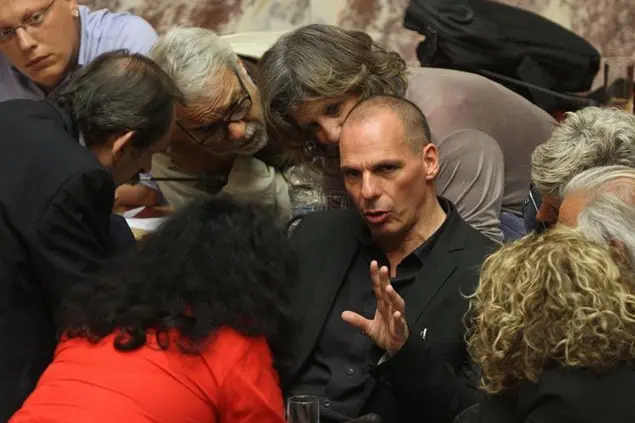 (Nella foto: il ministro dell'Economia Yanis Varoufakis durante il dibattito in Parlamento sul referendum sull'euro)