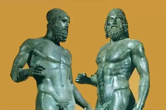 I due guerrieri greci hanno un’età differente: il “Vecchio”, il sospetto Milziade, è più giovane di 30 anni rispetto al primo. Secondo le ultime indagini si può dire con sufficiente approssimazione che siano stati prodotti in Grecia, in Attica o nell’Argolide, probabilmente da due scultori distinti: il Giovane, secondo alcuni studiosi, va riferito allo stile detto Severo e sarebbe opera di Ageladas di Argo, il Vecchio, che risente della scuola detta Classica sarebbe riconducibile a Policleto, allievo di bottega di Ageladas e autore di quel Canone che definiva le proporzioni geometriche della bellezza dell’arte. Secondo altri dietro il Giovane c’è addirittura la mano di Fidia e dietro il Vecchio quella del suo allievo Alcamene di Lemno, l’isola ateniese colonia di Atene. Come abbiamo già detto il loro fascino deriva anche dalle innumerevoli domande che si portano dietro. Un mistero cominciato fin dal giorno del loro ritrovamento.