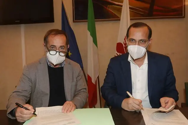 (nella foto,da sinistra, l'assessore al Dialogo interreligioso Alessandro Martini e l'Imam Izzeddin Elzir firmano il protocollo d'intesa)