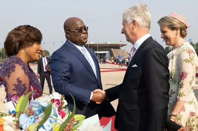 (Foto in alto: l'arrivo dei reali del Belgio all'aeroporto presidenziale di Kinshasa)
