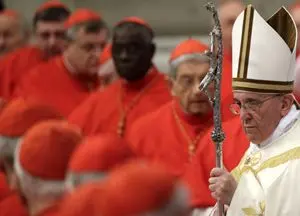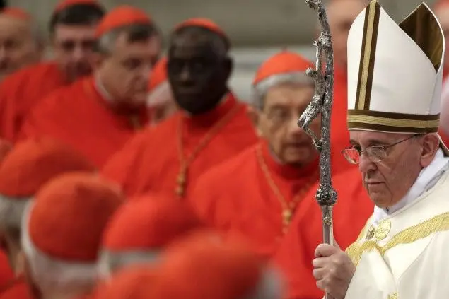 Alza il tono di voce, papa Francesco, per sottolineare ciò che più gli sta a cuore: che la curia il collegio cardinalizio non sia una corte: «Il Cardinale, specialmente a voi lo dico, entra nella Chiesa di Roma, fratelli non entra in una corte. Evitiamo tutti e aiutiamoci a vicenda ad evitare abitudini e comportamenti di corte: intrighi, chiacchiere, cordate, favoritismi, preferenze», dice il Papa nell'omelia della messa celebrata con le nuove porpore. Il Papa li esorta ad ascoltare la voce dello Spirito, ma soprattutto a pensare ai poveri, ai più piccoli, per non essere come una chiesa sconsacrata.