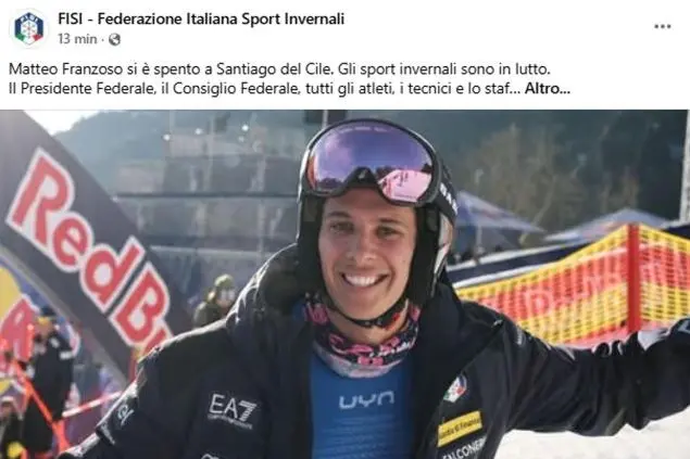 Matteo Franzoso se n’è andato il 15 settembre, il giorno prima di compiere 26 anni. Domenica 14 aveva avuto un grave incidente durante un allenamento con la Nazionale di sci alpino in Perù. Il comunicato della Fisi descrive così la dinamica: «Matteo ha affrontato male il primo, piccolo salto del tracciato di allenamento, finendo sbalzato in avanti verso le reti. Ha oltrepassato due file di reti e ha sbattuto contro la staccionata posizionata 6-7 metri fuori dal tracciato».