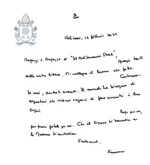 Il testo della lettera autografa di Papa Francesco del 12 febbraio 2022