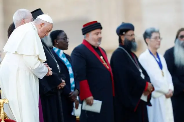 «Terzo, infine», ha concluso il Papa: «il silenzio è essenziale nel cammino di unità dei cristiani. É fondamentale infatti per la preghiera, da cui l’ecumenismo comincia e senza la quale è sterile. Gesù, infatti, ha pregato perché i suoi discepoli «siano una sola cosa» (Gv 17,21). Il silenzio fatto preghiera ci permette di accogliere il dono dell’unità “come Cristo la vuole”, “con i mezzi che Lui vuole”, non come frutto autonomo dei nostri sforzi e secondo criteri puramente umani. Più ci rivolgiamo insieme al Signore nella preghiera, più sentiamo che è Lui a purificarci e ad unirci al di là delle differenze. L’unità dei cristiani cresce in silenzio davanti alla croce, proprio come i semi che riceveremo e che raffigurano i diversi doni elargiti dallo Spirito Santo alle varie tradizioni: a noi il compito di seminarli, nella certezza che Dio solo dona la crescita. Essi saranno un segno per noi, chiamati a nostra volta a morire silenziosamente all’egoismo per crescere, attraverso l’azione dello Spirito Santo, nella comunione con Dio e nella fraternità tra di noi. Per questo chiediamo, nella preghiera comune, di imparare nuovamente a fare silenzio: per ascoltare la voce del Padre, la chiamata di Gesù e il gemito dello Spirito. Chiediamo che il Sinodo sia kairós di fraternità, luogo dove lo Spirito Santo purifichi la Chiesa dalle chiacchiere, dalle ideologie e dalle polarizzazioni. Mentre ci dirigiamo verso l’importante anniversario del grande Concilio di Nicea, chiediamo di saper adorare uniti».