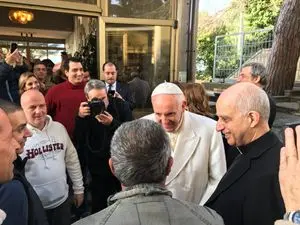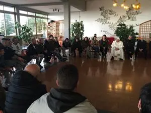 E' stata una visita a sorpresa, la sua. Fatta nel quadro dei "segni giulibari" voluti per connotare l'Anno della misericordia. Nel pomeriggio di venerdì 26 febbraio s'è recato tra i tossicodipendenti del Centro italiano di solidarietà (Ceis) di don Mario Picchi. Dopo il duro monito contro il narcotraffico espresso più volte durante il recente viaggio in Messico, Bergoglio ha voluto testimoniare la sua vicinanza alle persone che stanno lottando contro la dipendenza dalle droghe incontrando i 60 ospiti della comunità terapeutica San Carlo, aperta nel 1979 ai Castelli Romani da don Mario Picchi, da sempre considerato il laboratorio del Ceis.
