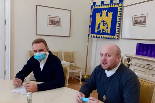 (Nella foto in alto: il sindaco di Leopoli Andriy Sadovyi (a sinistra) con don Andriy Bodnar, salesiano).