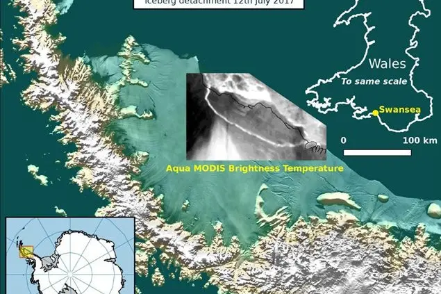 Lo hanno chiamato con una sigla alfanumerica, A68. Si tratta di uno dei più grandi iceberg mai visti nella storia, il risultato del distacco di una parte dalla piattaforma di ghiaccio Larsen C, lungo la costa orientale della penisola antartica. Ha una superficie più vasta della Liguria (circa 5.800 chilometri quadrati), con uno spessore centinaia di metri, per un migliaio di miliardi di tonnellate di peso di ghiaccio.