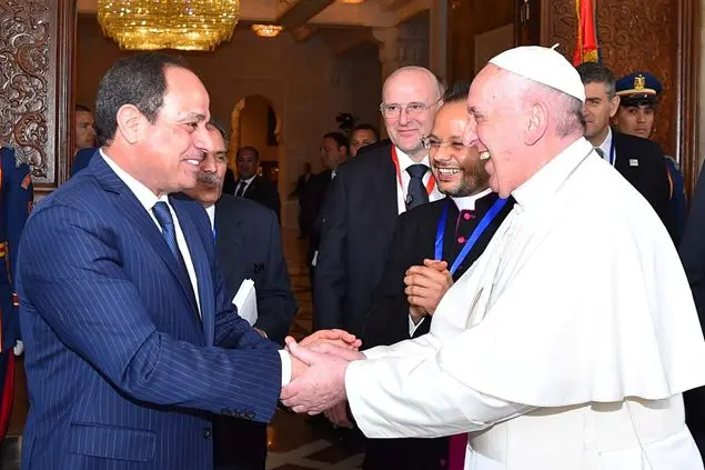 Per prevenire i conflitti ed edificare la pace è fondamentale adoperarsi per rimuovere le situazioni di povertà e di sfruttamento, dove gli estremismi più facilmente attecchiscono, e bloccare i flussi di denaro e di armi verso chi fomenta la violenza. Ancora più alla radice, è necessario arrestare la proliferazione di armi che, se vengono prodotte e commerciate, prima o poi verranno pure utilizzate. Solo rendendo trasparenti le torbide manovre che alimentano il cancro della guerra se ne possono prevenire le cause reali. A questo impegno urgente e gravoso sono tenuti i responsabili delle nazioni, delle istituzioni e dell’informazione, come noi responsabili di civiltà, convocati da Dio, dalla storia e dall’avvenire ad avviare, ciascuno nel proprio campo, processi di pace, non sottraendosi dal gettare solide basi di alleanza tra i popoli e gli Stati. Auspico che questa nobile e cara terra d’Egitto, con l’aiuto di Dio, possa rispondere ancora alla sua vocazione di civiltà e di alleanza, contribuendo a sviluppare processi di pace per questo amato popolo e per l’intera regione mediorientale.