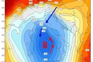 Un vortice di bassa pressione dapprima oggi sulla Sardegna, domai si porterà sull’Italia centrale per poi finire, lunedì, sull’Italia meridionale. Lungo il bordo meridionale della bassa pressione scorrono umide correnti le quali dopo avere raggiunto il Basso Tirreno sono costrette, dal moto antiorario intorno al Centro di bassa pressione, a deviare verso le regioni centrali e il Medio Adriatico, ove vengono a contatto con aria gelida balcanica di origine siberiana.