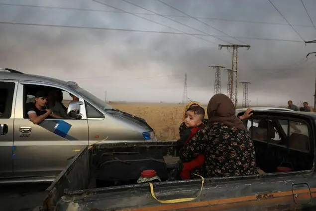 (Foto Reuters in alto: curdi siriani in fuga dalla città di Ras al-Ain)