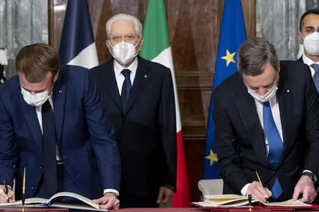 Il Trattato fu immaginato nel 2017 dal governo di Paolo Gentiloni, messo da parte in seguito all’ondata populista e alle tensioni fra Roma e Parigi, riesumato nel febbraio del 2020 nel summit bilaterale di Napoli fra Conte e Macron, che segnò la riconciliazione dopo la bufera. Poi arriva Draghi e tutto si accelera per portare alla firma di oggi.