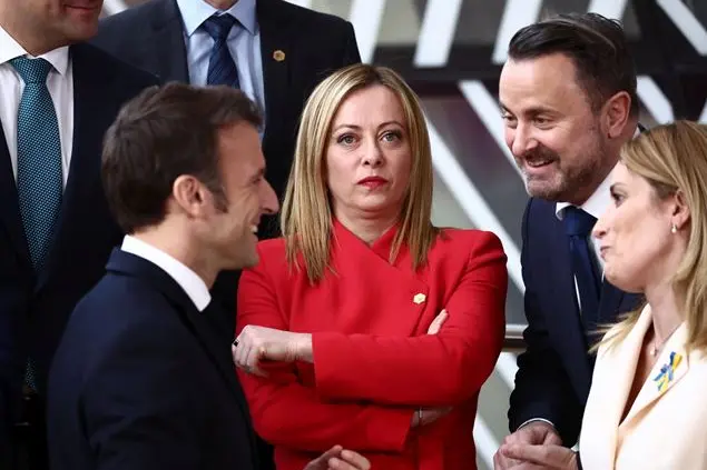 Tutto in due foto. Nella prima, il Premier italiano Giorgia Meloni fissa dritta davanti a sè, le braccia conserte, il volto corruciato, lo sguardo tagliente. A un passo da lei, il presidente francese Emmanuel Macron dispensa sorrisi e battute al Capo del governo lussemburghese, Xavier Bettel, e al Presidente del Parlamento euoropeo, Roberta Metsola. Nella seconda fotografia, la Meloni appare finalmente rilassata tra il Primo ministro polacco Mateusz Morawiecki e quello della Repubblica Ceca, Petr Fiala, esponenti di quel gruppo di Visegrad che ha fatto del sovranismo, dei muri e del filo spinato un abito mentale oltre che un programma politico. Le due immagini "raccontano" il Consiglio europeo straordinario convocato a Bruxelles il 9 e il 10 febbraio per discutere dell'appoggio dell'Unione europea all'Ucraina aggredita un anno fa dalla Russia nonché di economia e di migrazioni. Non tira una buona aria per l'Italia. Il perché di tante increspature lo si capisce guardando un'altra foto, scattata una manciata d'ore prima (l'8 febbraio, per la precisione) e in un altra capitale: Parigi. Mostra Emmanuel Macron, con il Presidente ucraino Volodymyr Zelenskiy e il Cancelliere tedesco Olaf Scholz.