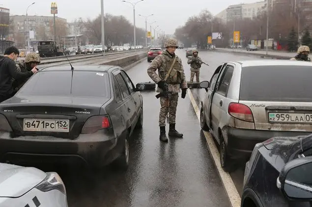 (Foto Reuters sopra: controlli delle forze dell'ordine lungo le strade ad Almaty)
