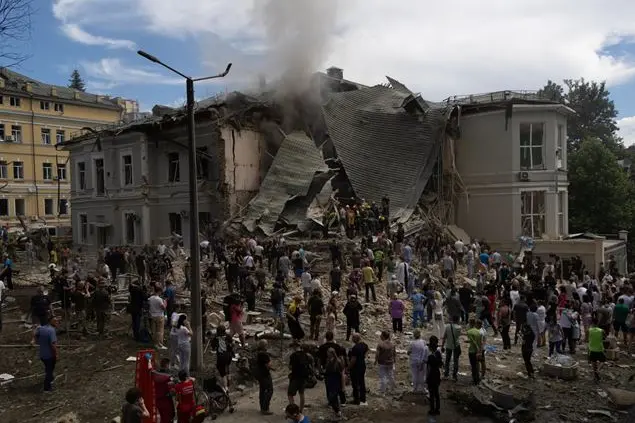 Si scava fra le macerie dell'ospedale pediatrico Okhmatdyt di Kiev, colpito oggi da un attacco missilistico russo. Nei video girati subito dopo le esplosioni si vedono operatori sanitari e gente comune muoversi fra detriti e il fumo. Okhmatdyt è uno dei centri pediatrici più importanti del Paese, un vero e proprio riferimento anche in questi anni di guerra. Secondo l’agenzia di stampa Afp altri missili avrebbero poi colpito anche un secondo ospedale della città: i morti sarebbero quattro.