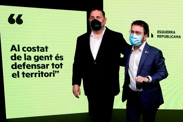 (Foto Reuters sopra: Pere Aragonès, a destra con Oriol Junqueras durante una conferenza stampa)