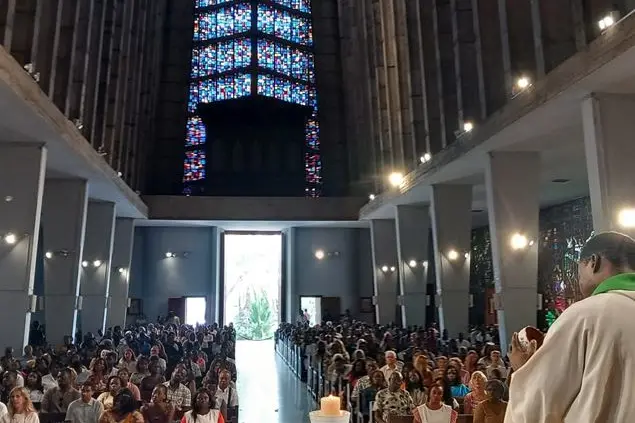 Visitare una cattedrale, come suggerisce qualsiasi architetto, è un’esperienza da vivere quando è piena di vita, quando si riempie di fedeli. Alle messe domenicali, la chiesa si riempie di circa 600 migranti, perlopiù africani subsahariani, accompagnati da qualche europeo. La celebrazione è una vera festa: tra canti, battimani, turbanti colorati e preghiere, la corale polifonica degli studenti universitari risuona potente. La processione delle offerte si svolge con gioia, portando ananas, banane, latte, vino e frutta esotica in un ritmo che mescola lingue e tradizioni: francese, latino, swahili, yoruba. Il "Padre nostro" spesso viene cantato con i melismi dell’arabo, segno di una Chiesa che, in terra d’Islam, vuole essere "sacramento dell’incontro".