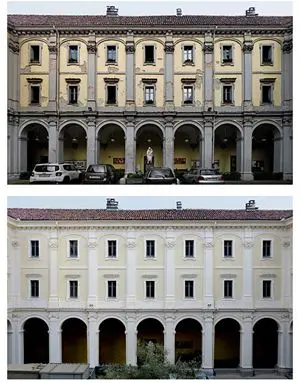 Un luogo così imponente e complesso ha bisogno di una costante manutenzione. Gli intervento ordinari non bastano. Da tempo il chiostro (che anticamente accoglieva la vita monastica dei padri Benedettini, poi Cistercensi e Oblati) pativa gli effetti dell’umidità e aveva bisogno di un decisivo risanamento. Il restauro – condotto grazie al costante confronto con la Direzione del Santuario, l’Ufficio Beni Culturali della Diocesi e la Soprintendenza Archeologia Belle Arti e Paesaggio per la Città metropolitana di Torino – ha riguardato le facciate (tinteggiate con il colore originario “ricreato” ex novo), le pareti, le volte e le pavimentazioni dei porticati. Sono stati anche realizzati alcuni adeguamenti, in funzione della sicurezza e dell’accessibilità per le persone disabili. L’altra parte del lavoro interessa le mensole e i cornicioni della cupola esagonale. Per realizzare gli interventi ci sono voluti 1.700 metri quadri di ponteggi. Il restauro si concluderà tra poche settimane, dopo circa 300 giorni di cantiere. E non è che la prima tranche di un progetto più ampio, finanziato dalla Fondazione Crt con un milione di Euro. Nei prossimi mesi i lavori proseguiranno in altre aree dell’edificio.