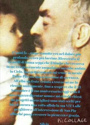 Ogni volta in cui ripensa «all’incredibile e per noi impossibile progetto del Padre… il mio cuore perde un battito per l’emozione. Affido questo suo figlio alla Sua volontà, certa che ha in serbo per lui un grande progetto di salvezza. Indelebile oltre al giorno della sua nascita, per me è il 23 Settembre San Pio, data in cui ricevetti la “condanna". Quella lunghissima notte in cui non avevo più lacrime, sola con il Solo, ebbi una strana sensazione, tra il sonno e la veglia, percepiii la voce di un vecchietto che diceva “spera e nascerà”. All'alba, entrò un frate in camera per consolarmi, mi ricordò padre Pio, insieme a una suorina di colore che continuava a sorridermi nonostante le mie lacrime. Poi al mattino arrivò mamma, trasferita per me a Roma, lasciando a casa i miei fratelli e mio padre… Mi costrinse ad alzarmi, nonostante fossi allettata da tempo, mi mise su una carrozzina e mi portò di peso nella cappellina, lí mi prese un colpo, un quadro esposto di Padre Pio… Di nuovo lui… una strana persecuzione. Subito dopo scoprii il perché... Era la sua festa, coincidenza? Preferisco pensare a Dioincidenza. Da quel momento il giogo fu più soave, avevo la certezza di non essere sola».