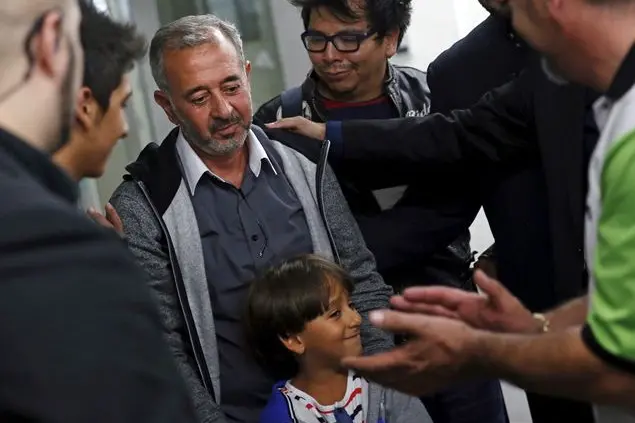 (nella foto Reuters: Osama Abdul Mohsen e il figlio più piccolo Zaid accolti alla stazione di Atocha a Madrid)